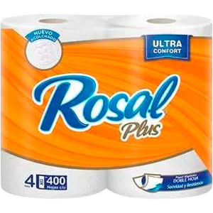 PAPEL HIGIENICO PLUS NARANJA 400 HOJAS ROSAL 4ROLLOS