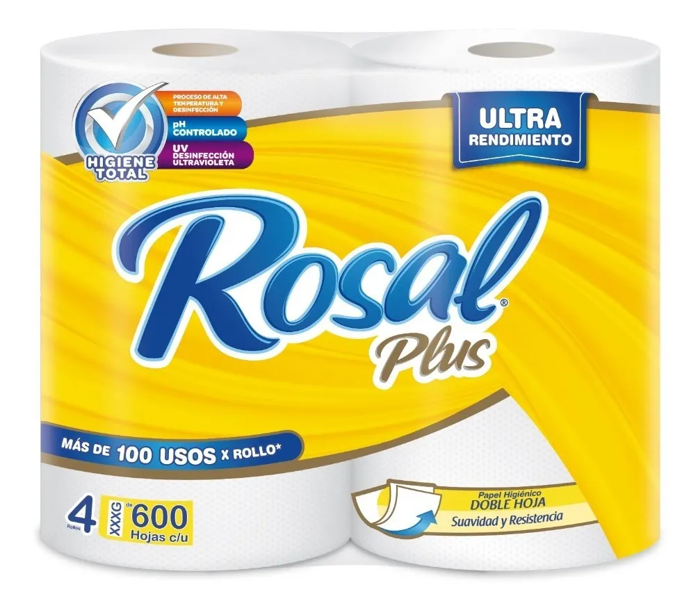 PAPEL HIGIENICO PLUS AMARILLO 600 HOJAS ROSAL 4ROLLOS