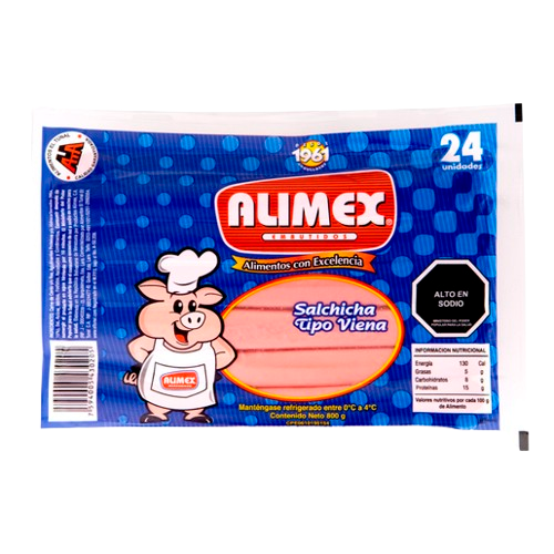 SALCHICHAS TIPO VIENA 24UND ALIMEX 800GR